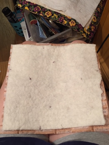 I lay the batting on the fabric square and fold the whole thing in half and sew my darts in each end. I refold it and sew the darts in those ends and continue on with the directions as normal.